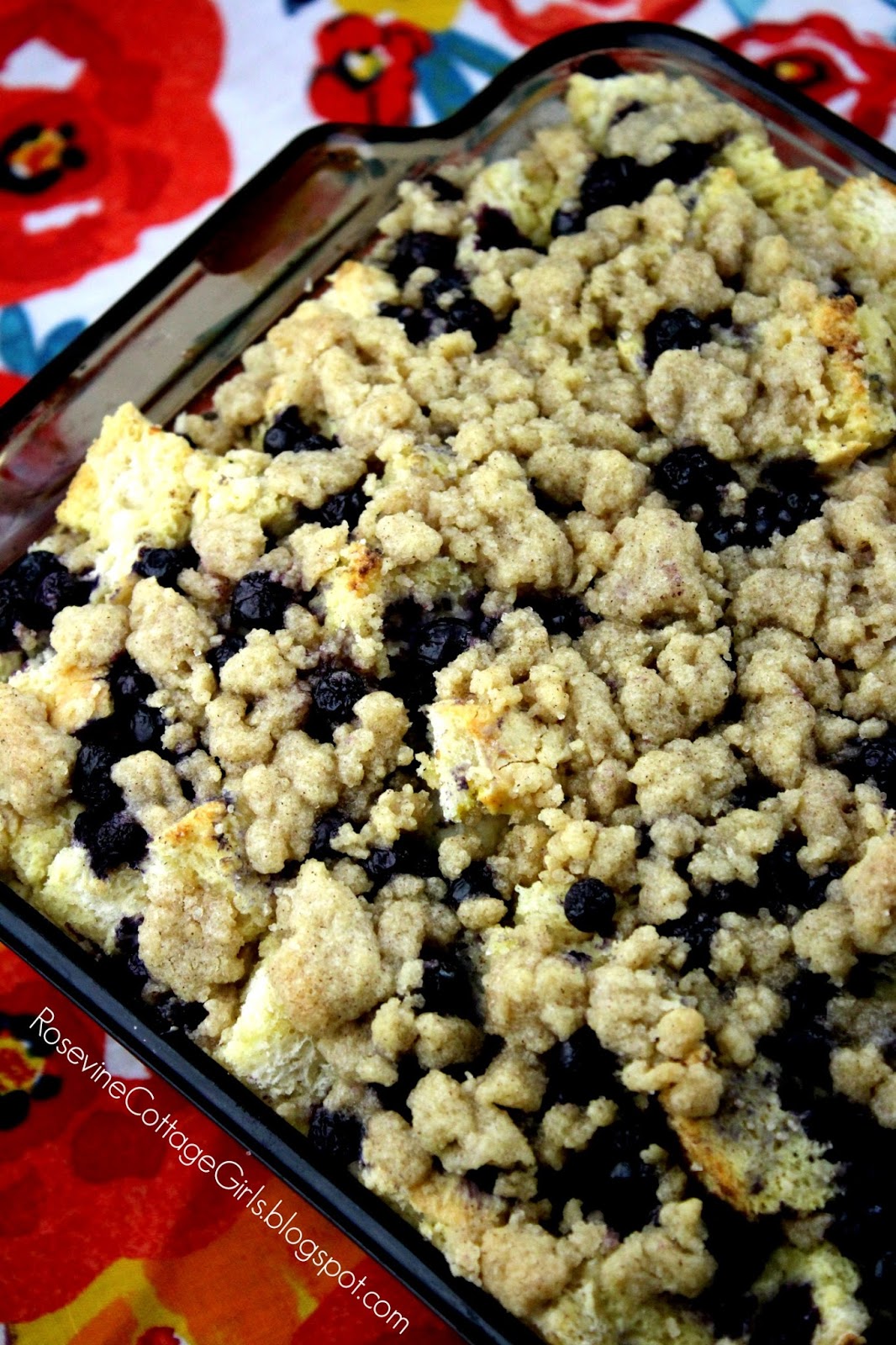 liquid. Pour the remaining blueberries over the top of the casserole and add the topping. Cover with cling wrap and place in the refrigerator for 1 hour - overnight. When you are ready to bake it remove from the fridge and preheat oven to 350. Bake for 30 minutes. Serve hot with whipped cream, maple syrup, fresh fruit, or anything else you can think of.